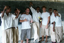 Volunteers from Oberlin College with students from Tchundwa Primary School