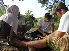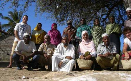 Some of the local teachers of Tchundwa Primary in Lamu with the volunteer teachers, Adrew Estep (1st left satanding), Lea (3rd right squatting), and Jimmy O’hare (1st right squatting)